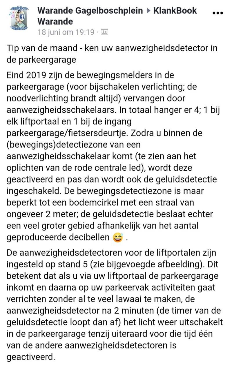 Kopie van bericht gepost op Klankboek over de aanwezigheidsdetectoren