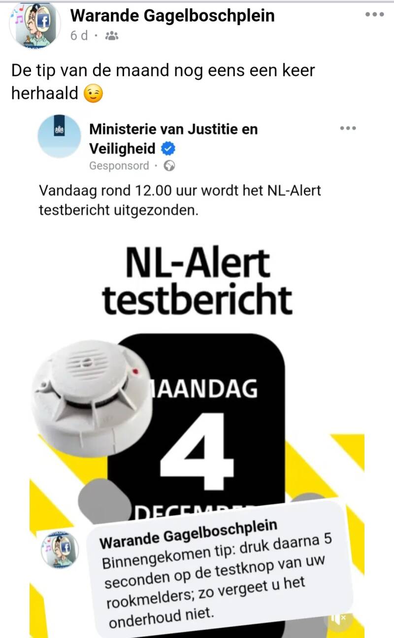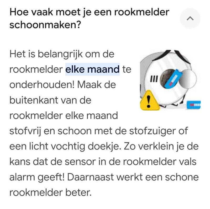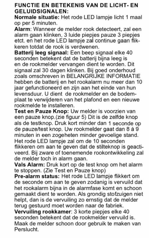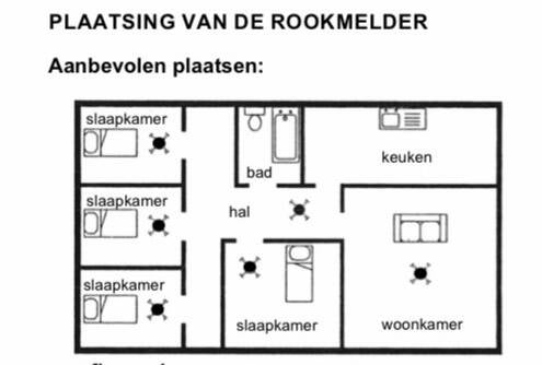In opdracht van Bouwinvest/vb&t eind 2023 opgehangen (d.m.v. kleefstripbevestiging) aan plafonds van de hal, inpandige berging, woonkamer en slaapkamers van alle appartementen. Indien de rookmelders onderhouden worden conform voorgeschreven, is de levensduur 10 jaar.