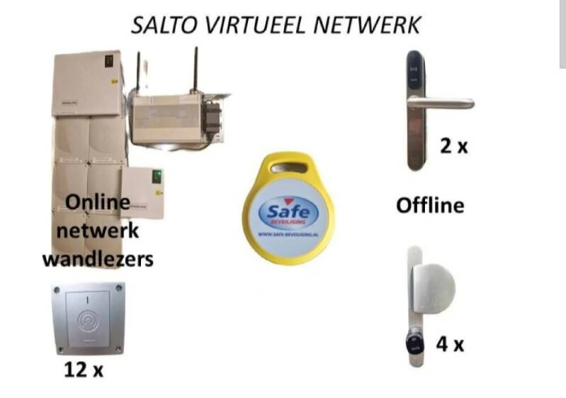 Het online wandlezernetwerk en de niet op internet aangesloten standalone elektronische sloten functioneren als een virtueel Salto-netwerk mogelijk gemaakt door de rol van de tag. Wijzigingen (aanpassingen in sleutelrechten) worden op uw tag geladen na voorhouden voor een wandlezer. De wandlezer fungeert hiertoe als een updatepunt binnen het virtuele netwerk. Via de standalone sloten kunnen geen wijzigingen in sleutelrechten worden overgedragen aan uw tag.